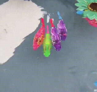 De vissen geven licht in verschillende kleuren. Maakt het spelen visueel aantrekkelijker, ook in donkere ruimtes.